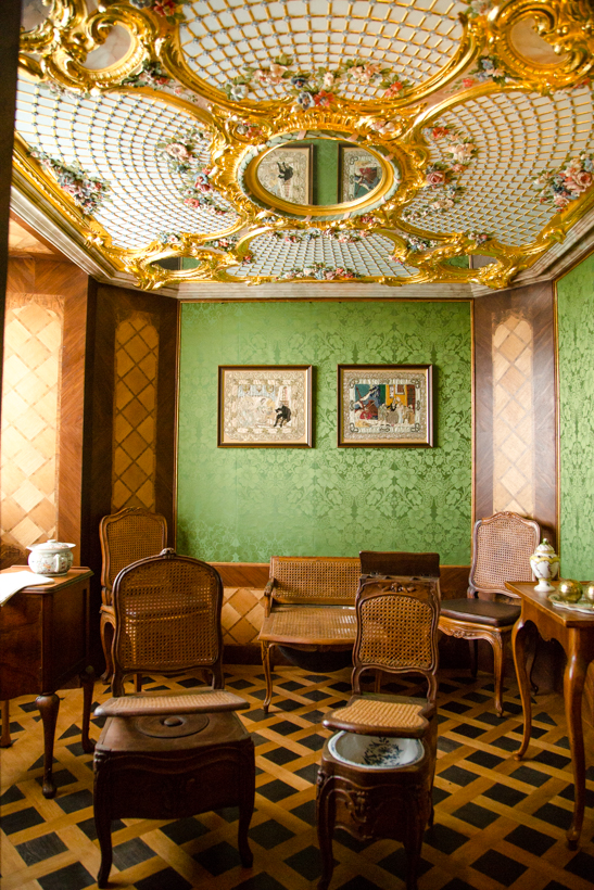 Edasi suundusime lossi tagumisse külge, kus oli ikka päris igasuguseid tube ja ruume. Küll tulevastele õukonnaliikmetele, küll külalistele, küll kabinette ja siis jälle lihtsalt puhkeruume või magamistube. Nägime ka salajasi uksi, mille kaudu sai ametiruumidest magamistuppa või mine tea, kust kuhu veel.
