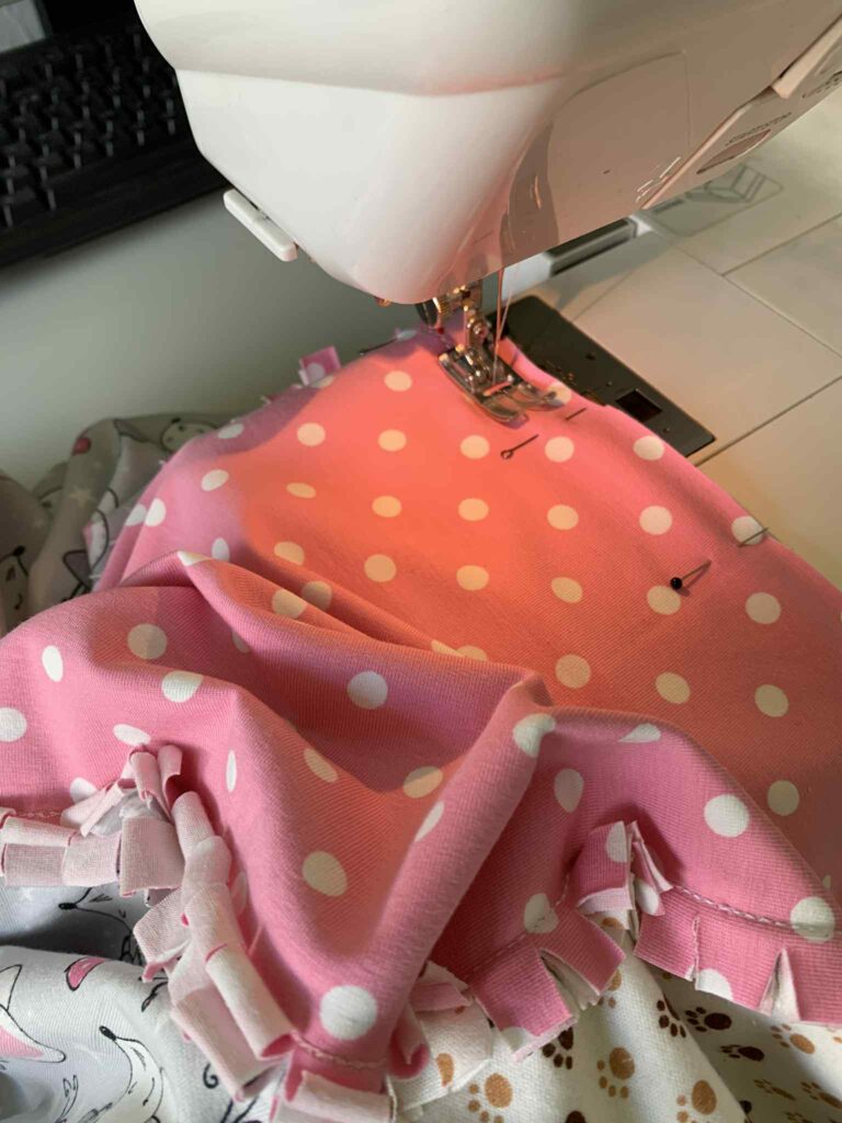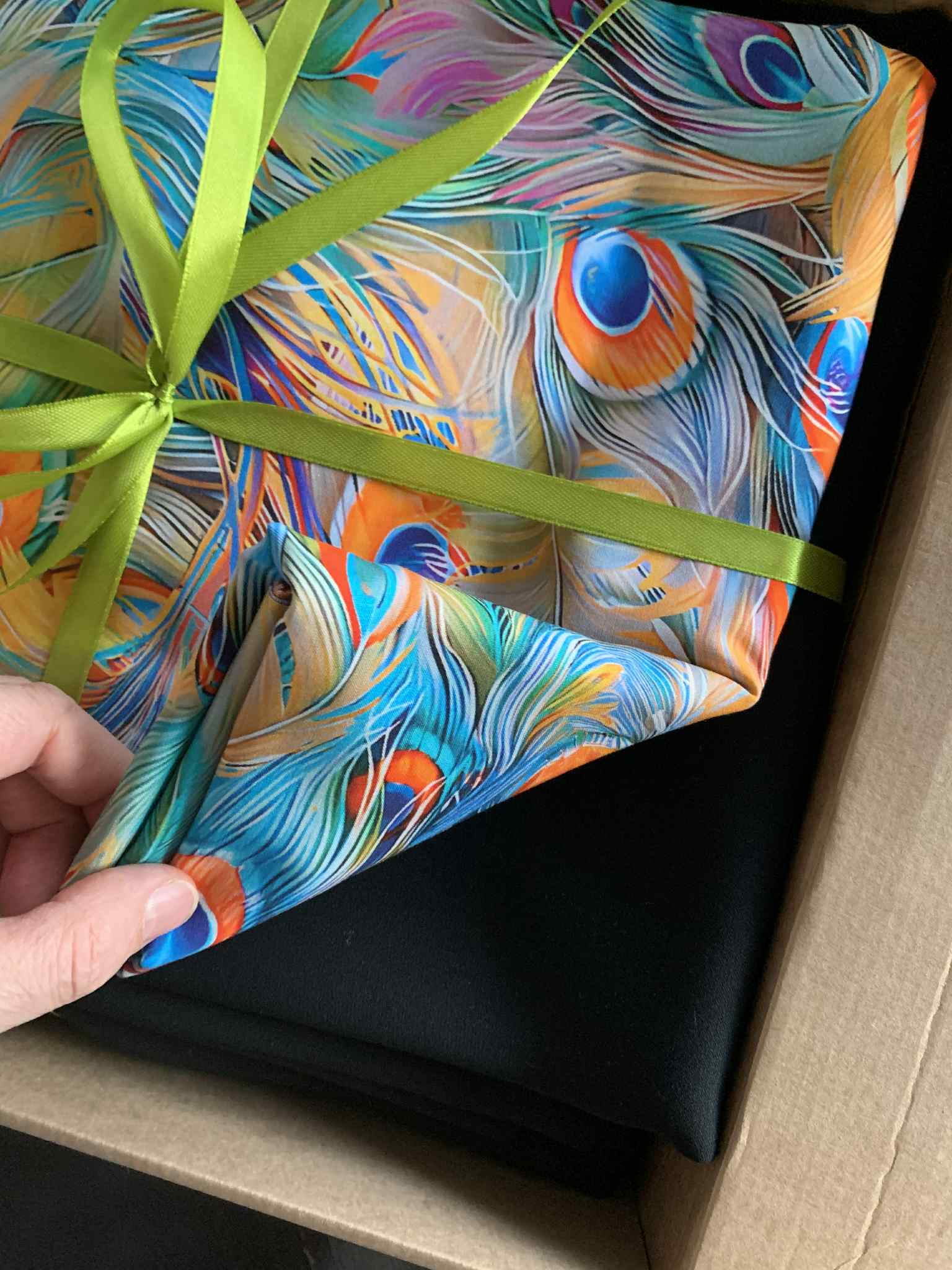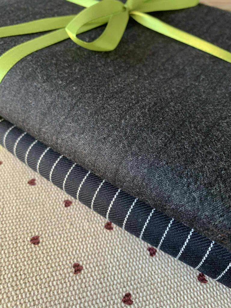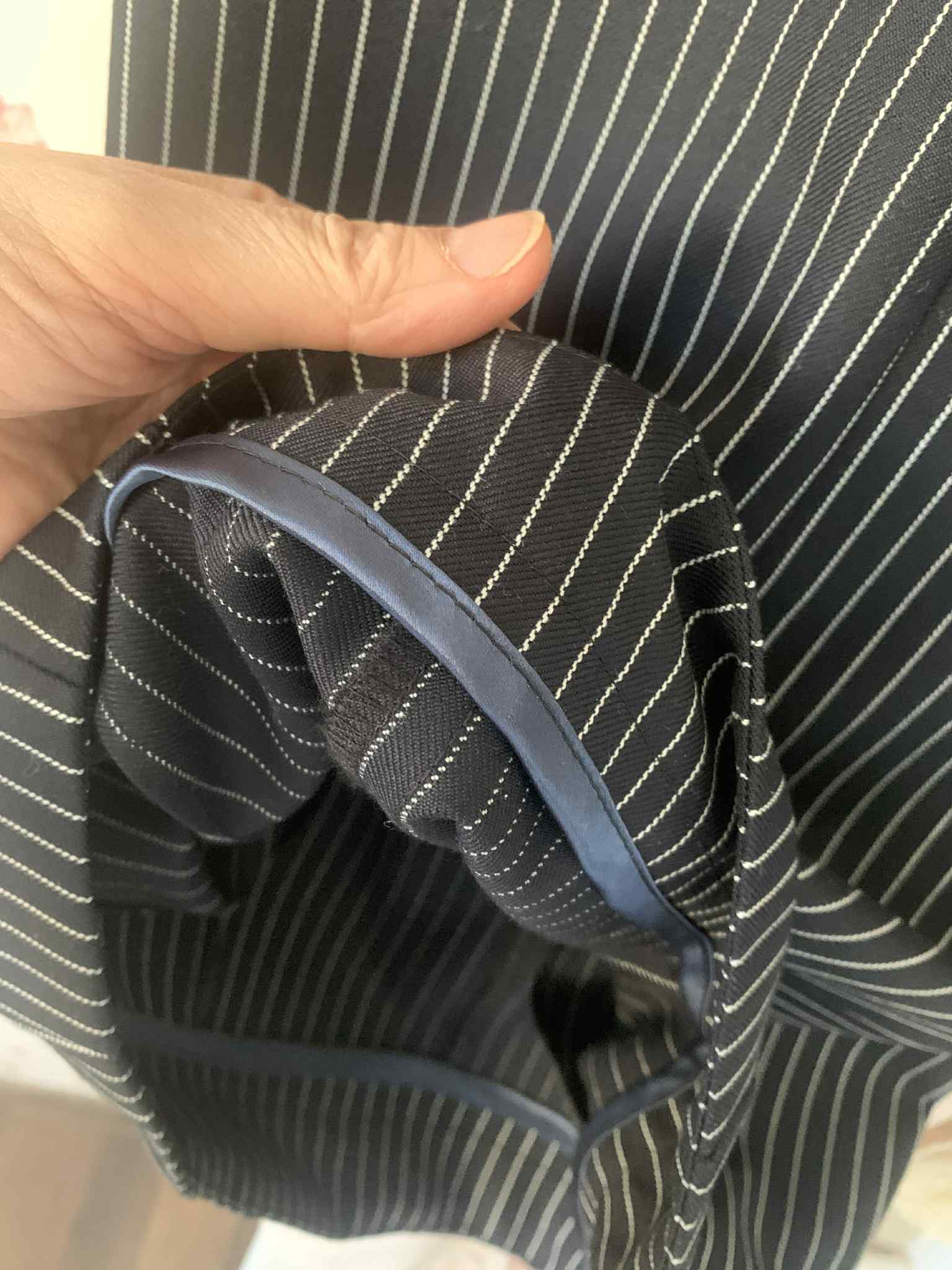 Õmblesin peaaegu valamis ammu väljalõigatud peenvillasest kangast püksid – endale. Puudu on kinnitushaak ja kui lapsel mahti, peaks allääred ära täpsustama. Ehk tuleb nendest millalgi veel mõni pilt, aga hetkel vaid see, kus on nähtaval peenelt töödeldud värvli sisemine pool. Et kangaid ikka puudu ei oleks, tulid kohe 3 asemele. Ühest mustast paksemast viskoosist tulevad vabalt langevad pidulikud püksid, teisest kreppviskoosist tütrele teatrikleit ja värviliste sulgedega kangast saab ühel päeval pluus. Triibuline peenvillane kangas on tegelikult kaunilt sügavsinine. Pildile jäi ikka päris valet värvi.