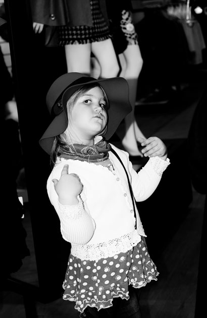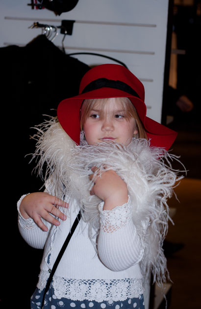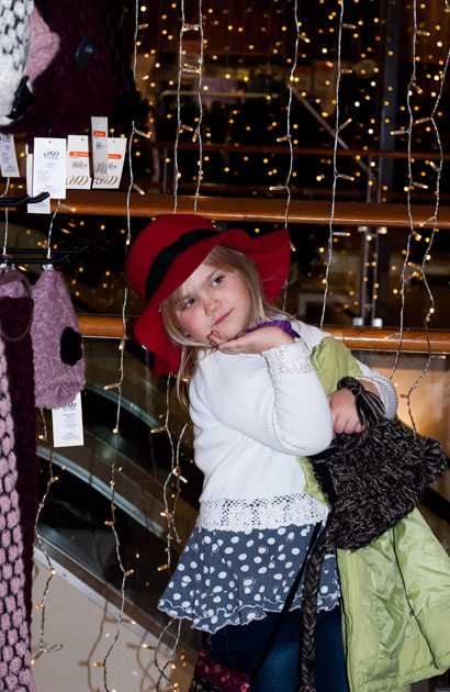Meie päev hakkas küll pisut varem peale, sest rongid tahavad sõita siis, kui nendel plaan, mitte meil vaja. Nii olime juba pool 3 linnas ja kella kuueni oli aega maa ja ilm. Kuna lapsele oli vaja teksaseid, selliseid retukate tüüpi ja venivaid, siis suundusime Viru keskusesse ja Kaubamajja šopingule. Lapsel lõid muidugi silmad särama, et jee, šoppama :D Mina ei ole suurem asi šoppaja ja seega rõõma ikka väiksem, aga…vajadus oli ja tuli seigelda. Ülesanne osutus keerulisemaks, kui ma arvasin. Terve keskuse peale leidsime ÜHED püksid, mida kannatas jalga panna ja ära osta. Oh, me olime ikka väga õnnelikud, kui püksid saime ja ei pidanud enam seal ringi kammima. Aega oli meil siiski veel ja sedasi me siis läbi maja seiklesime väljapääsu poole, et laps vaatas, mida tahtis ja mina lonkisin sihitult sabas:D Ühel hetkel astus riiuli tagant välja väike kübaraga daam :)