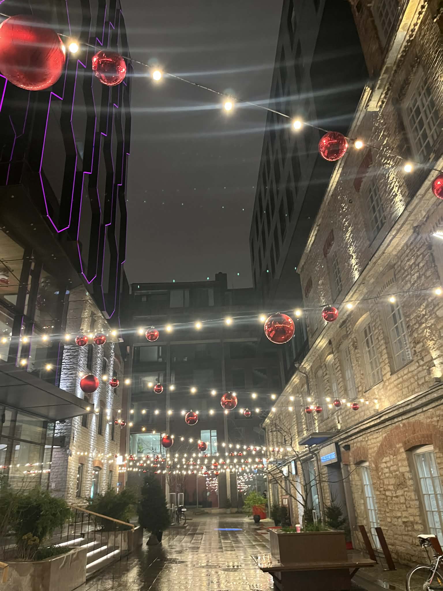 Korraks käisin restoran “Päris”-es, et osta sealt jõulupakki panemiseks prantsuse teed ja siis juba läbi jõulutuledes Rottermanni rongijaama.