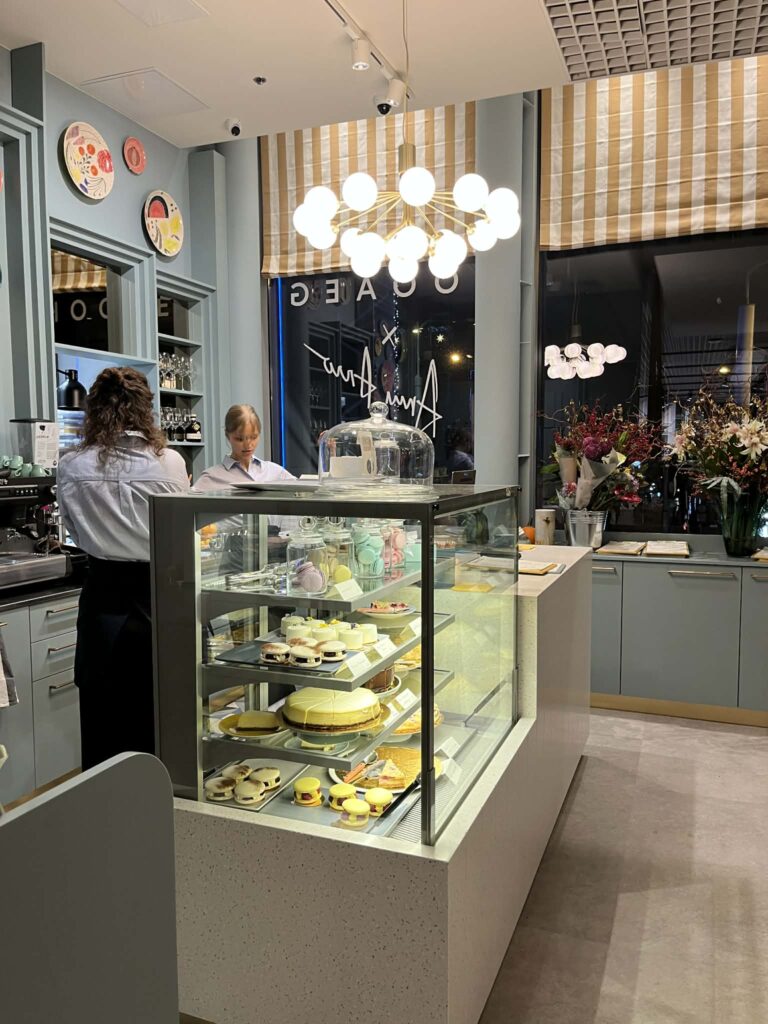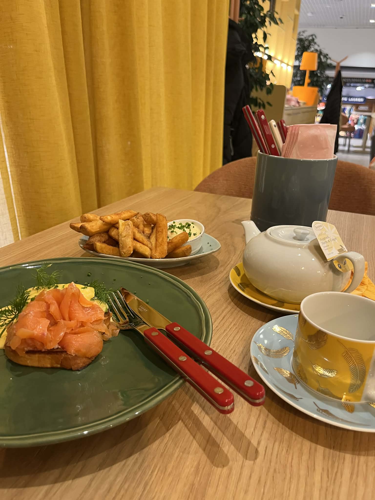 Ise läksin sööma vastavatud Anni Arro kohvikusse Hooaeg, mis asub kaubamaja kahe korpuse vahel galeriis. Mõnus interjöör ja hea toit. Küll mitte liiga odav. Julgen soovitada ja kesklinnas liikudes lähen ka ise sinna ehk tagasi. Loodan et pisut logisev teenindus on tingitud koha värskusest. Väga meeldis, et lauanõudena ja ka seintel oli kasutuses Anni õe keraamika ja portselan. Söögiriistad olid kaubamärgilt Sabre Paris ja neid müüakse Kaubamaja koduosakonnas ja tegelikult saab selle tootja nuge-kahvleid-lusikaid ka Tablescape-st.