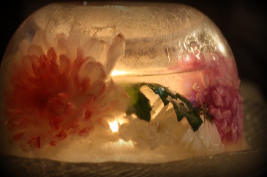 Tegemist on siis taaskasutusega :) Lilled pärinevad lillepoest mahakandmisele minevast kastist ja jääd sai teha sulalumest :P