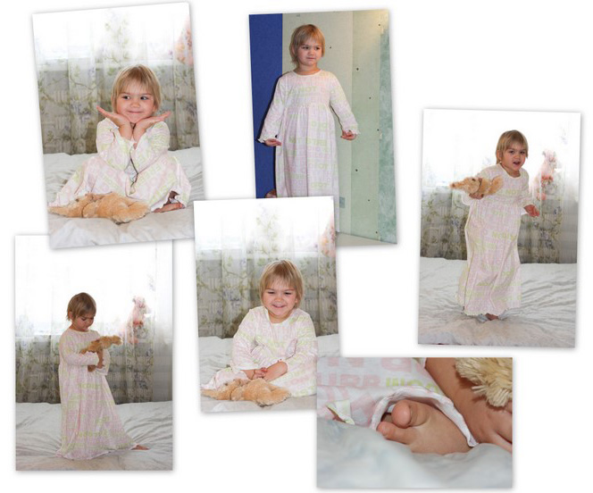 Saidki lapsele õmmeldud öösärk ja pidžaama. Sitsilised ja satsilised said teised, aga tüdrukutele see ju meeldib :)